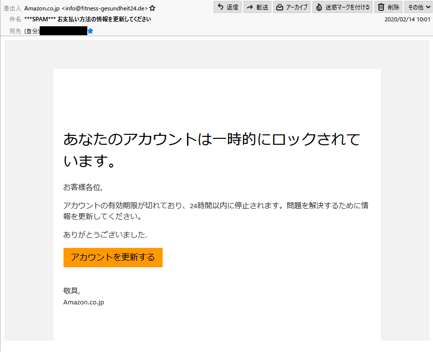 「あなたのアカウントは一時的にロックされています。」と言っておきながら、お客様各位はおかしいですよね?