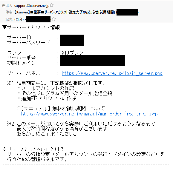 手順③⇒お申し込み完了ページが開いたら、入力したメールアドレス宛に「サーバーアカウント設定完了のお知らせ」メールが届いていることを確認する